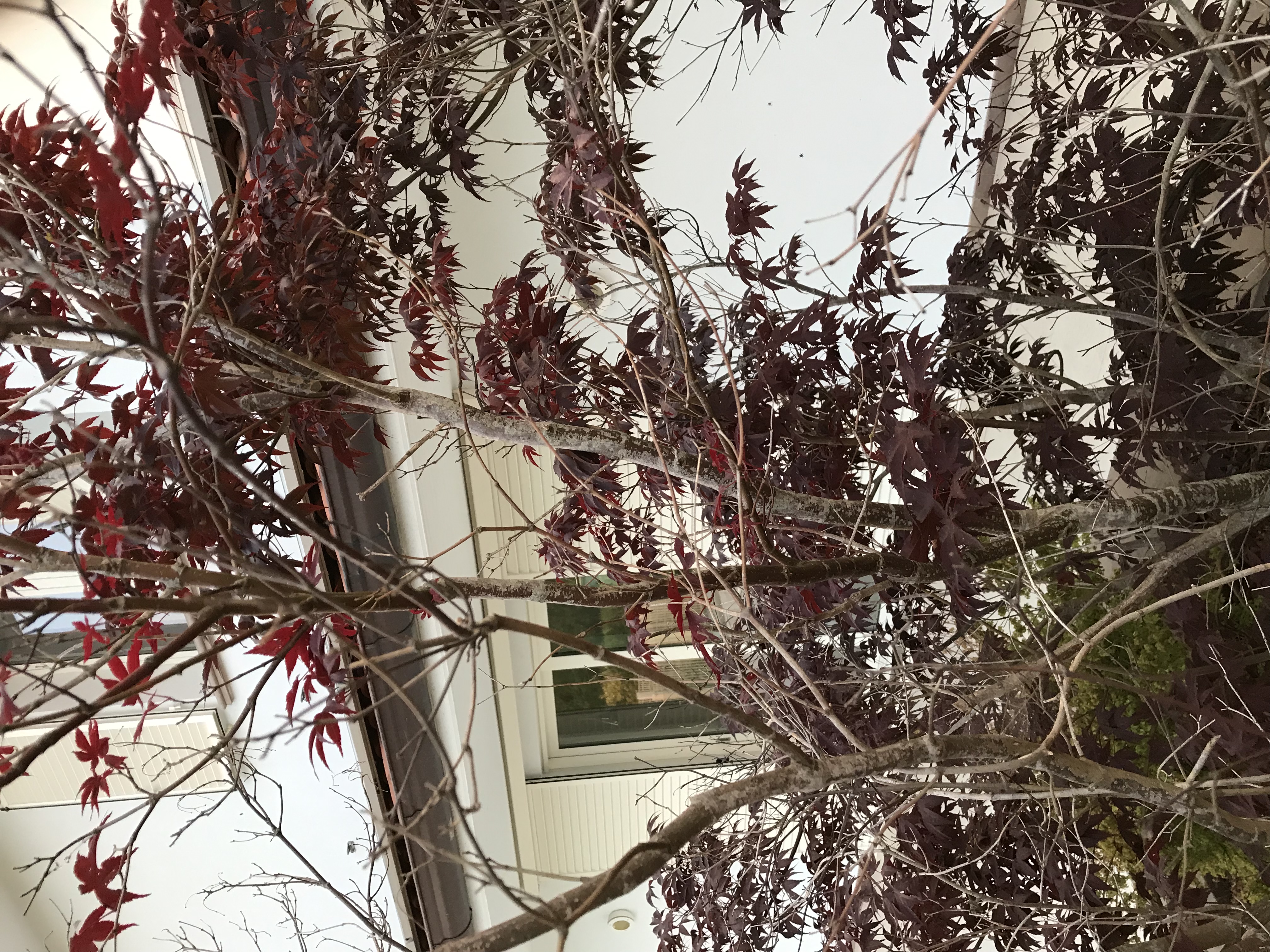 • l’acero krimson king, con foglie autunnali rosso vivo